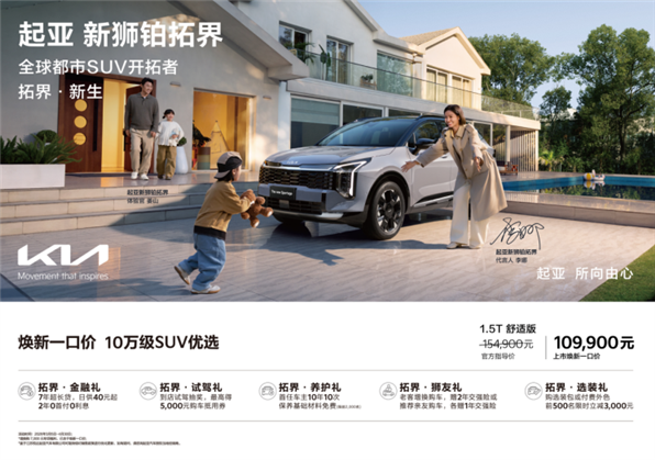 经典焕新,传奇再续。2026年3月13日,起亚新狮铂拓界沈阳区域正式上市,共推出7款车型,并在中国首次提供X-Line专属运动设计包,为回馈广大中国用户的信赖,即日起至4月30日,消费者购车即享全国统一“焕新一口价”10.99万元起!同时还可享金融礼、试驾礼、养护礼、狮友礼、选装礼5大尊享礼遇。